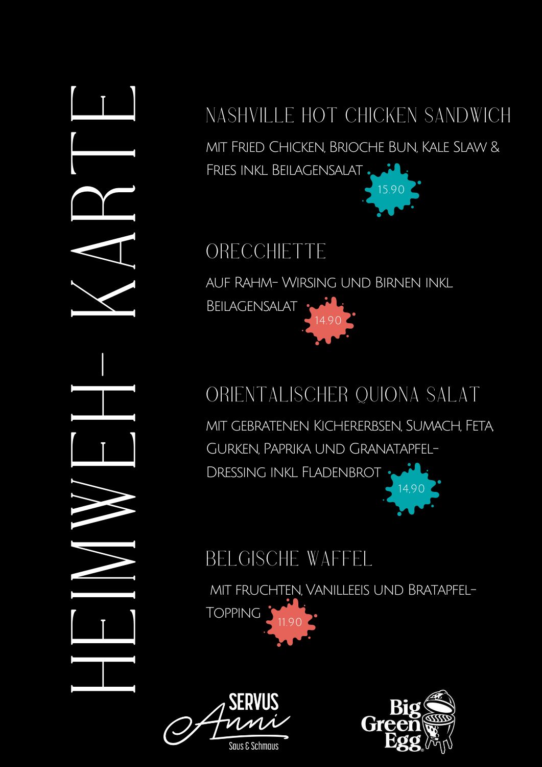 Einschränkungen gibt es diese Woche am Donnerstag! Wegen einer Hochzeit, die schon am Nachmittag startet, schließt unser kleines Café bereits nach dem Frühstück um 13 Unr! Sprich, die Heimweh- Karte ist erst ab Freitag gültig.....
